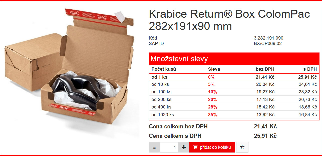 Obalové materiály, u kterých je možné získat nižší cenu v případě většího odběru poznáte velmi snadno. V detailu produktu máte zobrazenu sekci Množstevní slevy s výpisem jednotlivých slev rozdělených dle počtu odebraných kusů a pod nimi základní cenu za 1 kus.