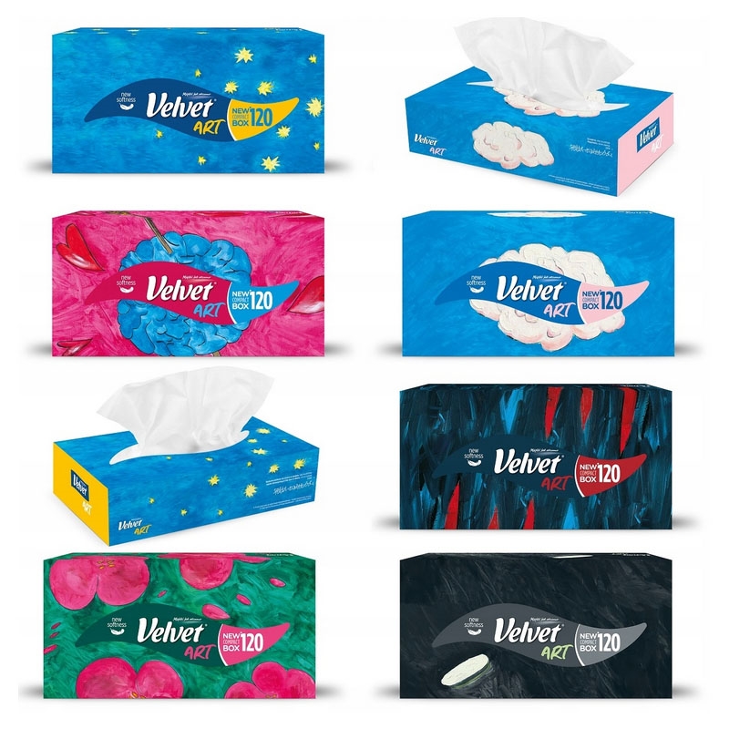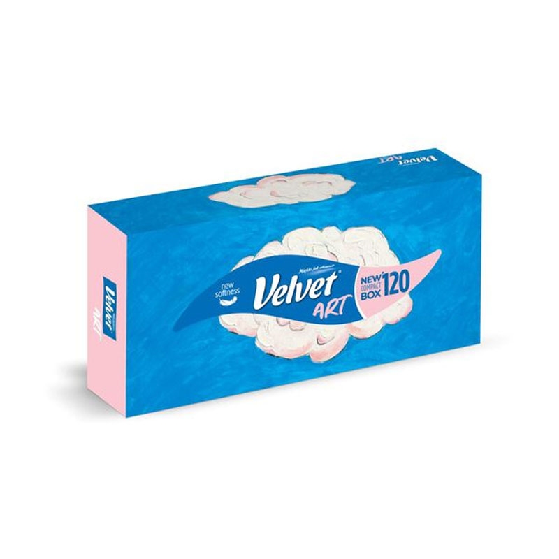 Velvet kosmetické ubrousky ART spojují jemnost, pevnost a stylový vzhled. Třívrstvé provedení zajišťuje maximální komfort při každodenním použití — od hygieny přes odličování až po osvěžení. Elegantní box s designovým potiskem dodá šmrnc každému interiéru. Balení obsahuje 120 kusů, ideální do domácnosti, kanceláře i veřejných prostor.