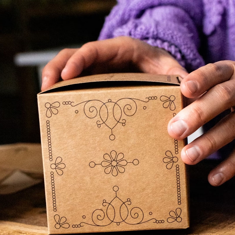Elegantní krabička s horním otevíráním, navržená pro stylové a funkční balení maloobchodních produktů. Je vyrobena z kvalitního potištěného kartonu, jehož povrch chrání tenká, mírně lesklá fólie. Ta nejen zvýrazňuje barevnost tisku, ale zároveň chrání grafiku před oděrem a vlhkostí. Díky čistému vzhledu a preciznímu zpracování působí krabička luxusně a profesionálně.
