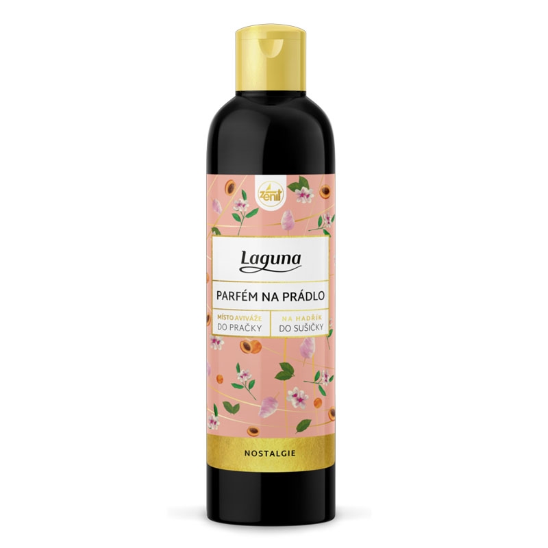 Laguna parfém na prádlo Nostalgie 300 ml – návrat do dětství s vůní cukrové vaty. Dopřejte svému prádlu jemnou a sladkou vůni broskvových květů, růže a cukrové vaty, která vás přenese zpět do bezstarostných let. Tento koncentrovaný parfém je určený pro použití v pračce i sušičce a je vhodný pro všechny typy textilií – včetně jemného, sportovního i funkčního prádla.