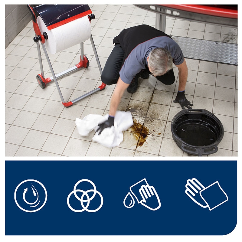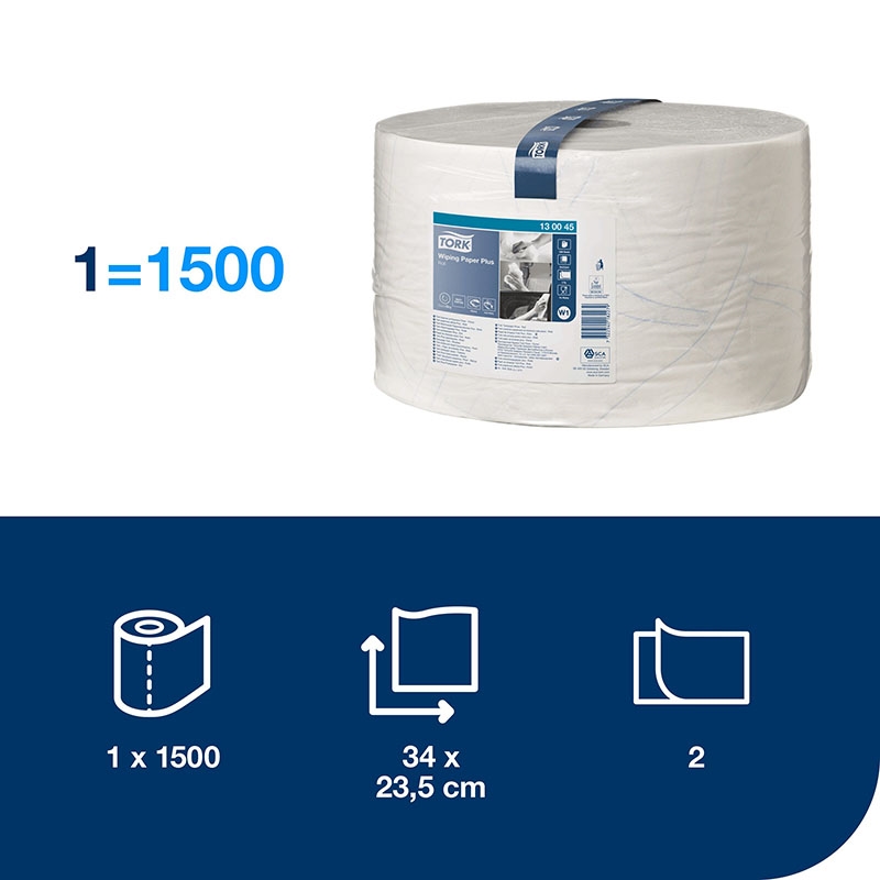 Dvouvrstvá víceúčelová papírová utěrka Tork Plus je ideální ke stírání rozlitých tekutin a sušení rukou. Lze ji používat v podlahových stojanech a nástěnných zásobnících Tork, které byly vyvinuty tak, aby zajistily bezpečnost, efektivitu a spolehlivost. Vyznačují se snadným vkládáním a odtrháváním a požadovaný počet kusů utěrek z nich lze odebrat jen jednou rukou.