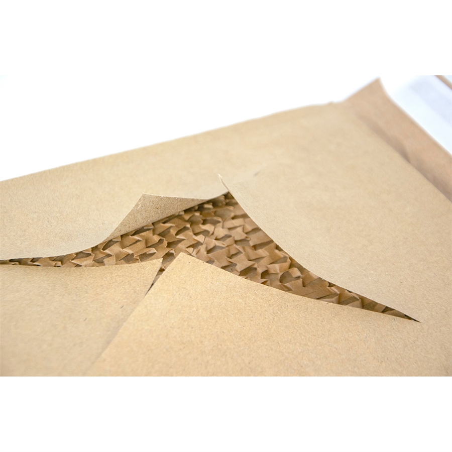 Obálka papírová s protinárazovou ochranou. Místo klasických protinárazových obálek, které používají jako tlumící výplň bublinkovou fólii jsou naše obálky vyplněny papírovou výplní, která díky své voštinové struktuře zaručuje stejnou ochranu křehkých předmětů během přepravy jako plastová bublinková fólie. Výplň je 100 % vyrobena z papíru, a je proto obzvláště šetrná k životnímu prostředí, je biologicky odbouratelná a představuje inovativní obalové řešení.