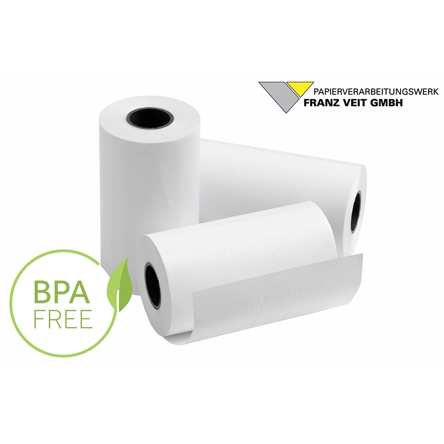 Kotouček ze zdraví nezávadného recyklovatelného termopapíru bez přítomnosti škodlivé látky Bisphenol A s označením BPA free.