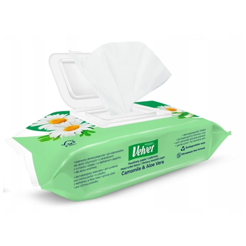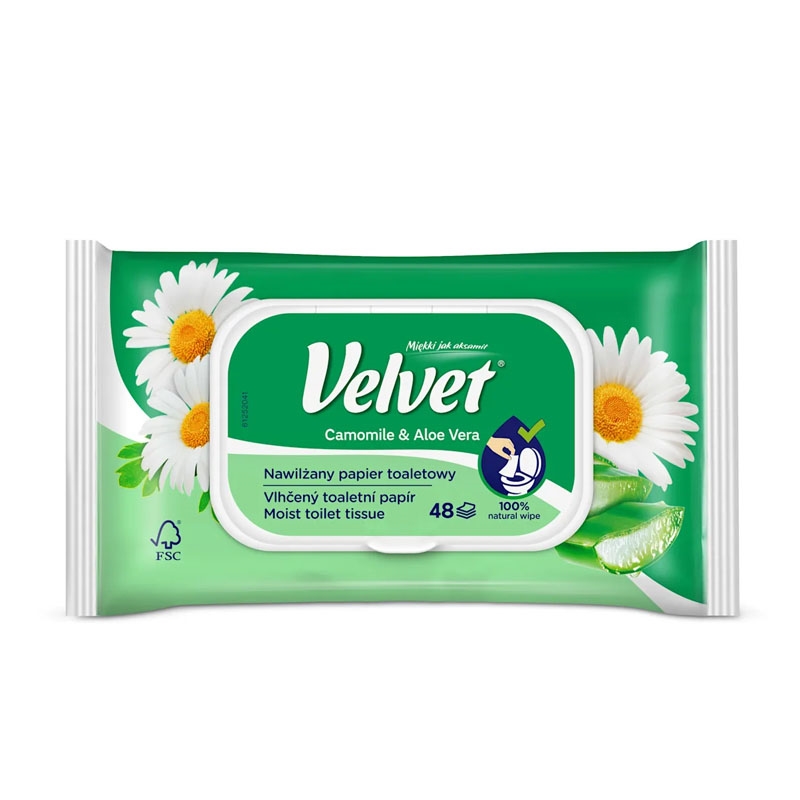 Vlhčený toaletní papír Velvet Camomile & Aloe Vera / 48 kusů