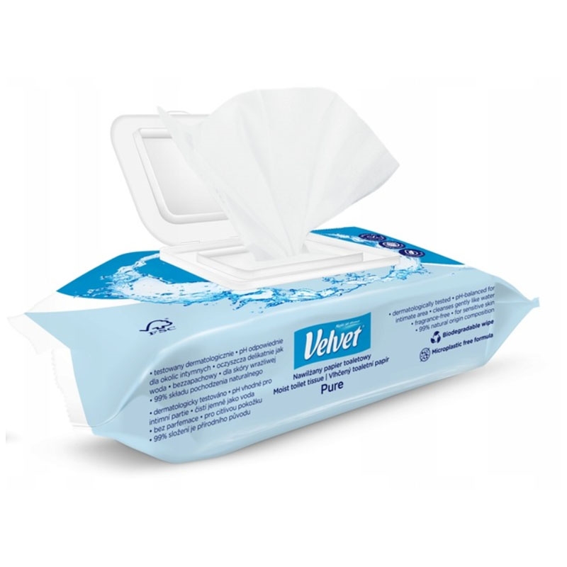 Vlhčený toaletní papír Velvet Pure / 48 kusů